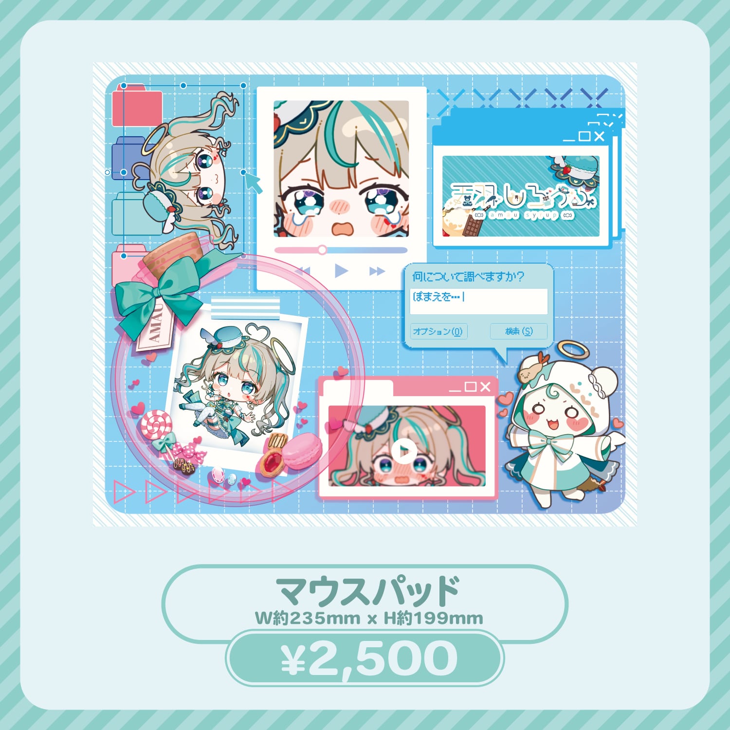 新商品5種(マウスパッド、ジオラマアクリルスタンド、チェキカード、オーロラアクリルキーホルダー、フレークシール)を